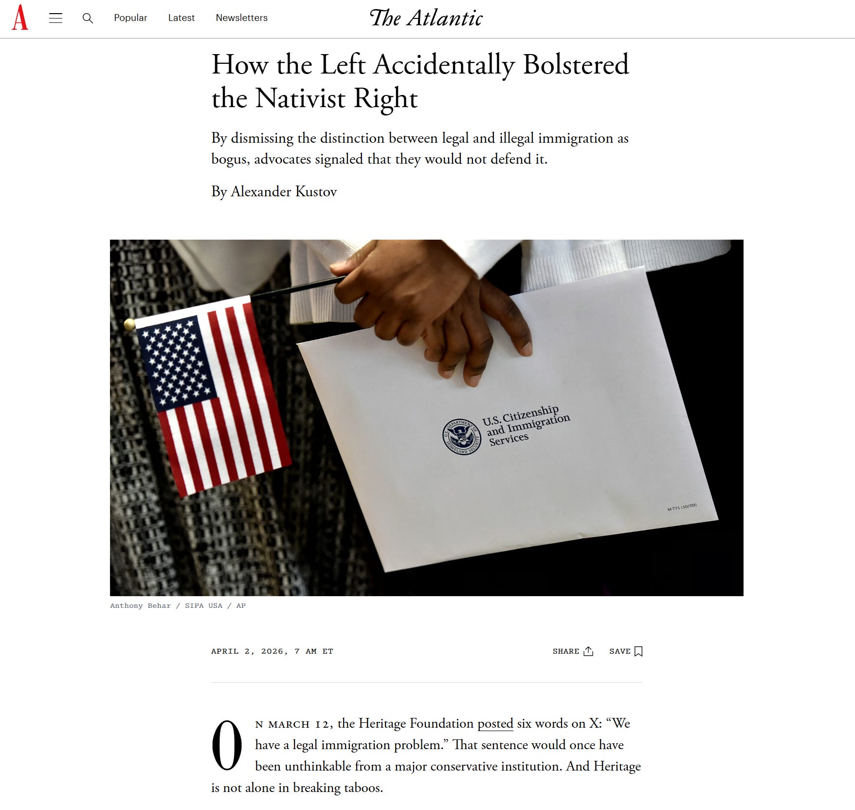 I have a new essay in The Atlantic (not my title) arguing that the norm of opposing "only" illegal immigration was insincere—but also useful, and now it’s gone.